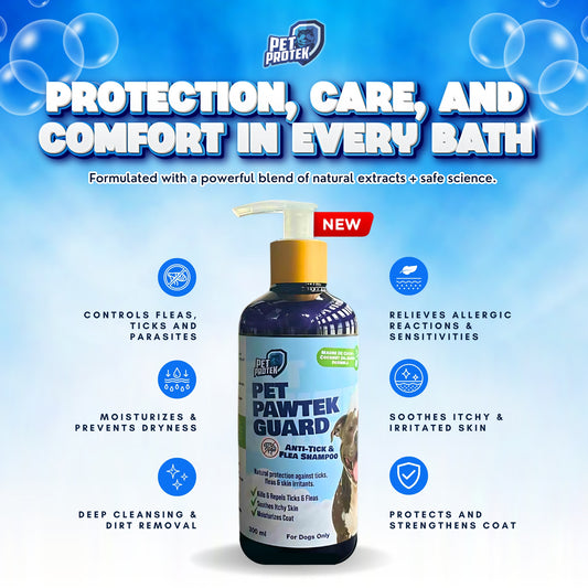 Pet Protek - PET PAWTEK GUARD (300 ml) Ultimate Anti Tick & Flea Shampoo for Dog Grooming for all types of Dogs and Puppies